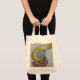 Design maluco, colorido, incomum mostrando um olhar para baixo, com um leve sorriso.
