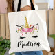 Bolsa Tote Unicorn Face com Eyelashes Nome Personalizado