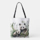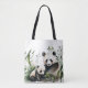 Urso panda bonitinho de aquarela em folhas de bambu com um filhote em fundo branco.