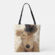 Urso marrom fofo e felpudo com laço de tule preto em fundo de burel marrom macio