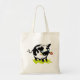 Uma vaca branca e negra adorável com uma flor na boca. Este design parece realmente eficaz nesta Tote Bag