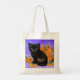 Tote Bag com um gatinho Van Gogh preto! Este gatinho fofo está sentado ao lado dos girassóis em frente a um fundo roxo. Um presente maravilhoso para amantes de gatos e colecionadores de arte holandeses!