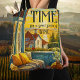 Saco com pintura de uma sala acolhedora com vista para uma área costeira. Com um copo de vinho! Excelente para um amante de livros (a imagem conta uma história afinal) que desfruta de um copo de vermelho. A imagem é pintada de forma vaga no estilo Van Gogh.
