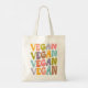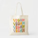 Esta simples bolsa de tote "Vegan" apresenta uma palavra colorida em cores retrorreflectoras.