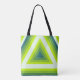 Esta imagem é um desenho abstrato geométrico com triângulos concêntricos aninhados. Os triângulos são organizados de forma a criar uma ilusão de profundidade e perspectiva, atraindo o olhar do espectador em direção ao centro. A paleta de cores consiste em vários tons de verde—do alto ao limão brilhante e verde claro—que se misturam perfeitamente para formar um gradiente visualmente impressionante. A simetria e a repetição dão a ela um sentimento dinâmico e moderno, fazer-o adequado como arte digital, fundo ou mesmo design de impressão.