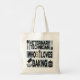Esta bolsa de tote de padeiro, com a citação "Veterinary Technician Who Loves Baking" em cima das bandejas de biscoitos cercadas por utensílios cozinheiros, é perfeita para qualquer técnico veterinário que adora assar.