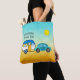 No nosso bolsa de viagem personalizado fofo para férias, aposentados de viadutos, e RVers de cheio, um pequeno aqua puxa uma colchão azul e laranja colorido. O céu está limpo, o sol está brilhando e você está no modo de viagem de cheio. O texto na frente da bolsa diz, "Bolsa de Viagem da Stephanie" e pode ser facilmente personalizado com seu próprio nome e palavras. Acessórios adicionais de coordenação de viagem estão disponíveis.