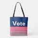 Encorajem os vossos concidadãos a votarem de uma forma festiva com este saco de votação patriótico vermelho, branco e azul. A palavra "Voto" figura no texto branco no topo, sobre um fundo azul escuro. Abaixo do texto, há listras vermelhas e brancas que atravessam a bolsa.