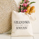 Uma bolsa de tote moderna minimalista para celebrar uma avó cômica, esta bolsa mínima limpa apresenta "Vovó" ou sua escolha de apelido avó em letras negras de serifa. Personalize com o ano em que ela se tornou avó por baixo de elegantes números romanos para um toque chic.
