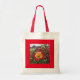 Um belo cheio de cor! Abelhas felizes zunindo em torno de uma dália vermelha e amarela chamada "Rodas". Muitos outros dahlias são vistos ao fundo com um arco-íris de cor!