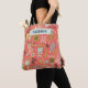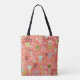 Saco bonito de design com tulipas, videiras e corações, em várias cores, num fundo cor-de-rosa, com , com aspecto branco. Há uma área que você pode personalizar facilmente com seu nome!