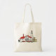 TOTE BAG FEATURING HAND DRAWN FULL COLOR IMAGE OF HISTORIC WHITEFISH POINT LIGHTHOUSE IN UPPER PENINSULA OF MICHIGAN ON LAKE SUPERIOR.