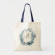 Nosso bolsa personalizado personalizado apresenta uma coroa botânica azul e branca de aquarela com seu monograma inicial de solteiro inscrito no dentro em escrita manual.