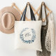 Nosso bolsa personalizado personalizado apresenta uma coroa botânica de cor d'água azul e branca com seu nome ou monograma inscrito dentro em script escrito à mão.