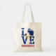 Wisconsin love - Wisconsin em letras maiúsculas vermelhas, com a palavra amada preenchida com a bandeira estadual. A letra O apaixonada é a silhueta com o contorno do Estado de Wisconsin.