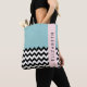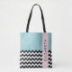 Bolsa Tote Zigzag preto-e-branco, Chevron, azul, seu nome