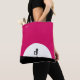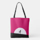Um saco personalizado com uma criatura zombie legal. Esquema de cor rosa e preto a negrito vibrante. Uma silhueta zumbi com braços estendidos na caça por cérebros. Uma grande lua branca ilumina por trás.