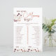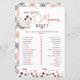 Adicione um toque de diversão e riso à sua celebração com este charmoso jogo de chá de fraldas "Quem Conhece Melhor Mamãe?". Apresentando um design delicioso com abóboras aquáticas e elegantes florais de outono em tons ricos de burgundy e ferrugem, ele complementa perfeitamente seu chá de fraldas rústico de outono. Os hóspedes adorarão adivinhar as preferências das mamães com estas questões envolventes "isto ou aquilo", criando momentos memoráveis e bastante entretenimento.