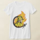 Esta design mostra uma das profissões mais reconhecíveis, um bombeiro. Este bombeiro está colocado contra o fundo de algumas chamas e está segurando uma mangueira de fogo pronta para apagar as chamas. Este bombeiro com uma mangueira de design parece excelente nesta t-shirt feminina. Perfeito para si mesmo ou como presente