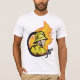 Esta design mostra uma das profissões mais reconhecíveis, um bombeiro. Este bombeiro está colocado contra o fundo de algumas chamas e está segurando uma mangueira de fogo pronta para apagar as chamas. Este bombeiro com uma mangueira de design parece excelente nesta camiseta masculina. Perfeito para si mesmo ou como presente