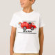 Este design adorável apresenta um caminhão de bombeiros vermelho brilhante. Olhar por trás do caminhão é um cachorrinho Dalmaciano bonito, vestindo um chapéu vermelho de fogo. No fundo da design há uma área que pode ser personalizada.