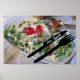 Poster culinária com imagem de uma salada grega e de uma faca preta e garfo com as palavras Bon Appétit.