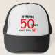 Este presente engraçado de gag de 50 anos é um chapéu que diz, "Levou 50 anos para conseguir este chapéu." Este é um chapéu excelente para a cara que tem bom senso de humor e para quem procura ideias de presentes de 50 anos. Copyright Kathy Henis