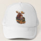 Um homem se posiciona com um rifle na mão, enfrentando um grande alce masculino em um momento de tensão e incerteza.