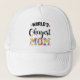 A mãe mais bonita do mundo em letras mistas. O mundo está em letras maiúsculas pretas, acentuadas com dois corações de rabisco vermelho profundo. Muito bem na fonte de script cursivo. Mãe na fonte do estilo serif versity em maiúsculas com preenchimento de margarida floral.