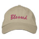 Bendito bordado a rosa num chapéu de cor khaki. A cor e a cor do texto podem ser personalizadas.