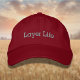 Lettering, bordado em um chapéu. Para o pequeno agricultor que adora ovos. E frango. E ainda mais ovos. Sugestão: chapéu vermelho com alfaces ligeiramente cinzas. Outras cores básicas também podem funcionar. Se preferir um texto diferente, personalize a inscrição. Pode ser personalizado.