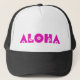Aloha em uma fonte brilhante de flor rosa contra um fundo que pode ser mudado. Você pode adicionar uma foto das suas férias havaianas se quiser.