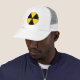 Boné branco da bola com o símbolo amarelo e preto da radiação.