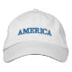 A América é bordada em azul neste boné de baseball unisexo. Maneira perfeita de mostrar seu patriotismo no dia 4 de julho, Dia Memorial ou qualquer ocasião.