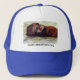 Apoie lontras de mar ao manter o brilho fora de seus olhos com este chapéu do azul de oceano que contem uma imagem bonita de uma mãe & de um filhote de cachorro.