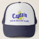 Ancora azul e amarela náutica com guincho de guincho capitão chapéu com o nome do seu barco a vela ou a motor