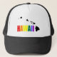 O nome do estado do Havaí em cores do arco-íris, junto com a forma das ilhas.