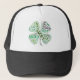 Silhueta de trevo de quatro folhas com "Sorte" em várias fontes e tamanhos