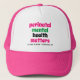 A saúde mental perinatal é importante para o chapéu de caminhoneiro, com verso Bíblia PERSONALIZÁVEL por baixo para encorajar mulheres (e homens) a se manifestarem. Projetado com tipografia em negrito, rosa, verde e preto. O verso da Bíblia pode ser excluído ou você pode personalizar com detalhes de sua organização ou com sua mensagem inspiradora. Este boné de beisebol para saúde mental materna seria ideal para vestir a grupos de mães e bebês, conferências de mulheres, grupos religiosos, etc. Itens correspondentes disponíveis.