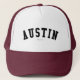 Verifique para fora este chapéu de Austin! É você de Austin, Texas? Você tem um amigo ou um membro da família que amem Austin, Texas? Em caso afirmativo, este chapéu da "bandeira" é exatamente o presente que você está procurando! As características de design "Austin" na rotulação preta arqueada na pia batismal clássica da faculdade.
