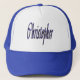 Em destaque neste boné está um logotipo do nome Christopher das estrelas azuis.