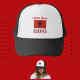 Design que mostra a bandeira albanesa com a palavra ALBANIA abaixo nas cores da bandeira. Acima é um lugar para um nome, em letras vermelhas. A bandeira é vermelha com uma águia dupla preta no centro. Ao usar o recurso editar link de design, você pode alterar a fonte do nome, bem como a cor. Excelente para vestir a uma reunião de família, celebração albanesa, grupo viagem ou clube. presente de excelente para compartilhar a herança.
