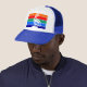 Chapéu com design com a bandeira da Rua. Petersburgo, Flórida. Uma bandeira com faixas laranja, vermelha, verde, azul e azul marinho com um símbolo pelicano branco