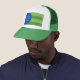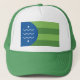 Trucker Hat com um design com a bandeira de Bellingham, Washington. Uma bandeira verde e azul
