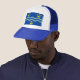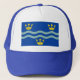 Chapéu com design com uma bandeira do condado histórico de Cambridgeshire, na Inglaterra, Excelente da Grã-Bretanha; bandeira azul com três coroas ouros e duas ondas