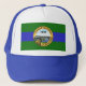Trucker Hat com a bandeira de Chattanooga, Tennessee. Uma bandeira verde e azul com o selo da cidade no centro