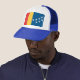 Chapéu com a bandeira de Durham, Carolina do Norte. Uma bandeira vermelha, amarela e azul com sete estrelas brancas