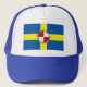 Chapéu com design com design com uma bandeira do condado histórico de Pembrokeshire, no País de Gales, na Grã-Bretanha Excelente; bandeira azul-azure com uma cruz amarela e rosa de Tudor branca no centro