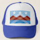 Trucker Hat com uma design com a bandeira de Peoria, Arizona. Uma bandeira azul, marrom e branca com picos de montanha e três estrelas