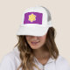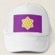 Chapéu com design com pavilhão da Prefeitura de Kyoto no Japão (京 都, Kyōto-fu), uma bandeira roxa com símbolo branco e amarelo de uma flor de cereja